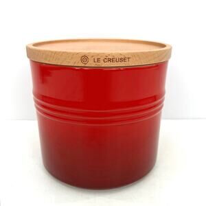 Le creuset Signature XL Storage Canister Medium Jar with wooden lid.