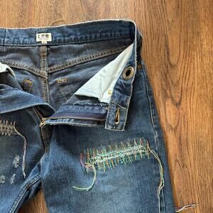 These jeans are extremely rare and feature gorgeous distressing and repairs throughout with unique hardware and great quality denim. Nice flared shape to the jeans and tagged L(w32)