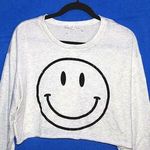 Le lis Collection Grey Smiley Face Cropped Sweatshirt S