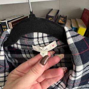 Le lis black red white flannel plaid button down long sleeve western blouse top