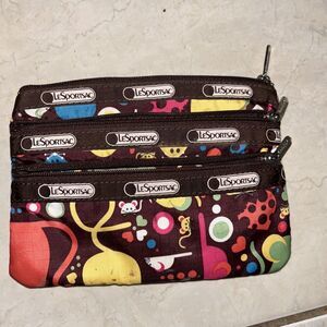 Le sportsac Mouse Print Brown Three Zipper pouch