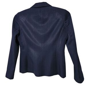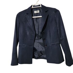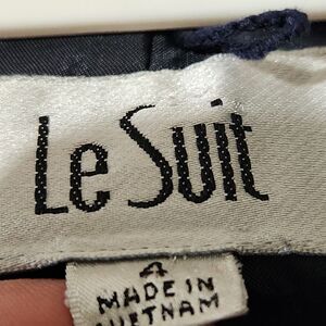 The Le Suit women's navy blue blazer in size 4 features a classic design with 3 front buttons and shoulder pads, adding a sophisticated touch to any outfit.