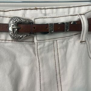 Machine was on cool cycle, secure all fastens before wash, remove belt before wash, wash with similar colors, wash with similar fabrications, use non-chlorinated bleach as needed, promptly remove from wash, tumble dry on low.