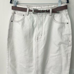 Le' AL.X Denim Pick Stitch High Waist Back Slit Opening Pencil Maxi Skirt 31