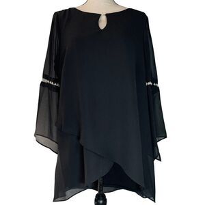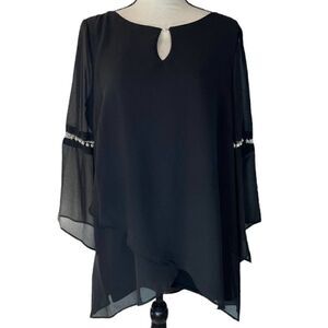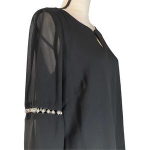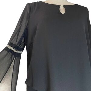 Le Bos Long Sleeve Bead Embellished Blouse Black Career Date Night Classy Top