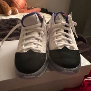 Dynamic Nike sneakers for kids. White mesh with black accents. Blue highlights add flair. New worn once