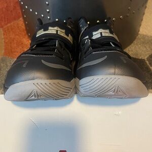 Lace up front, top velcro closure with LeBron logo, side nike logo, rubber soles.