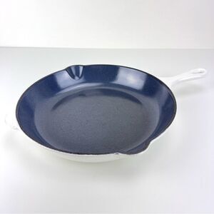 Le Creuset Cast Iron Enamel #26 Double Spout Frying Pan Skillet 10” white.