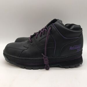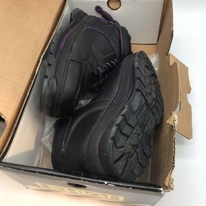 LeHigh NuGuard 75, Safety Toe, Work Shoes. Women's size 6.5W, Black with Purple Laces, Slip & Oil Resistant, Ankle Boots.