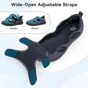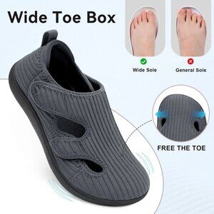 wide toe box comfort, breathable design, anti-skid sole, casual rubber sole, indoor outdoor use, zero-drop footwear, grey shoes, therapeutic style, women's recovery shoes, adjustable strap shoes, cushioned insole footwear, swollen feet friendly, flexible foot support