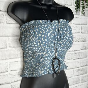Le Lis Blue White Tube Top Crop Summer Top Ruffle Smocked Size Large Boho Hippie