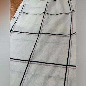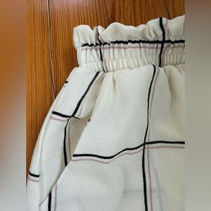 Lightly worn. Cream colored with stripes. Lined at the top. No size tag, but fits Size S