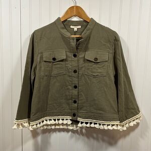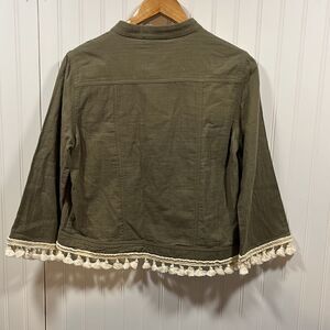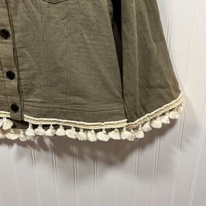 NWT LeLis Finley Olive tassel long sleeve button up jacket