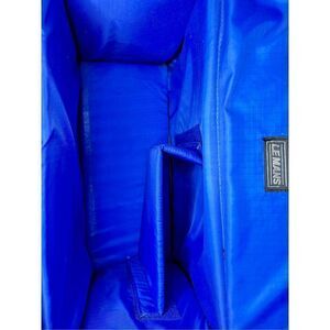 The bag is in good condition with light cosmetic wear. Straps are adjustable. Great size, zippered pockets.