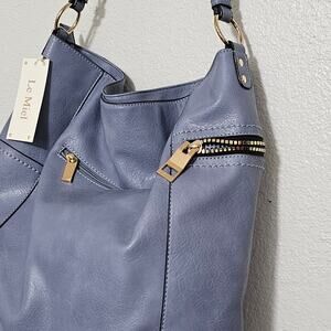 LeMiel Vegan Leather Blue 15" x 16" tote Shoulder Bag