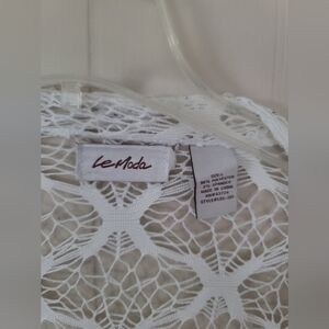 LeModa Women's Size Large Crochet Overthrow Blouse Half Sleeve Women Top.Great for any occasion beach, cruises, and pools. The buttons are absolutely fabulous. It is used and in very good condition. Please review all photos and ask any questions you may have prior to purchase. No returns.