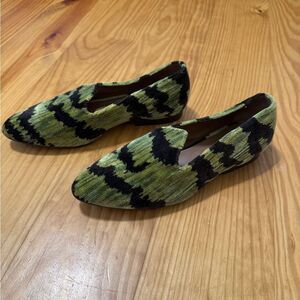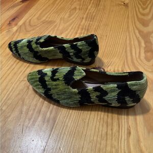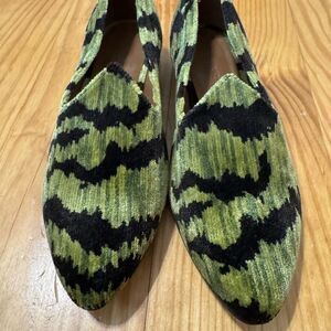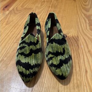 Le Monde Beryl Tiger Print Bevilacqua Velvet Venetian Slippers Green Women’s 38 US 7.5-8