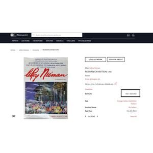 Offered here is an original offset lithograph exhibition poster of LeRoy Neiman’s Piazza del Popolo – Rome, created for his landmark 1988 solo show at the State Tretyakov Gallery in Moscow, USSR. This collectible piece captures the artist’s vibrant interpretation of the iconic Roman plaza, filled with bold color and dynamic composition.