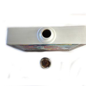 1979 LeRoy Neiman expressionism ceramic liquor bottle baseball themed. Brightly colored bar decor. Manufactured by Satin Wood Distilling Co. in Lawrenceburg, KY. 7.75" X 2" X 7.75" H. Wear to cork and cap.