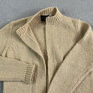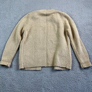 LeRoy Sweater Womens Medium Tan Knit Cardigan Acrylic Open Front Patch Pockets