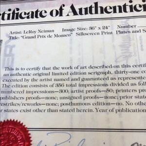 One owner: My parents were collectors of Leroy Neiman serigraphs. They purchased this original Grand Prix de Monaco in 1977 in Tahoe City