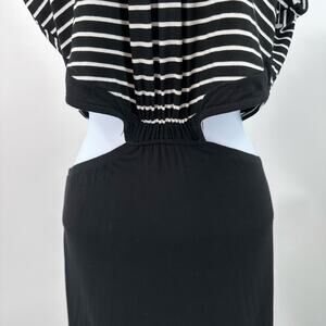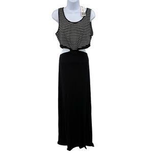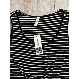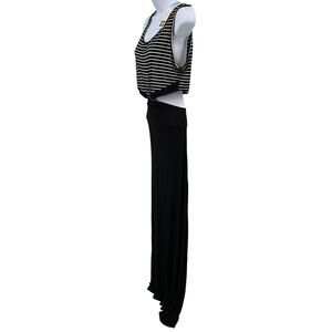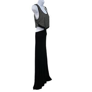 LeShop Maxi Striped Top Solid Skirt Black/White L Stretchy Waist Sleeveless Crew