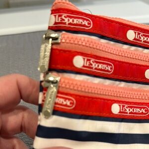 LeSportSac 3 Zip Pouch Cosmetic Accessory Case Red, Blue, White striped EUC