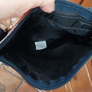 This travel friendly purse may have never been used. There are no tags. It is in new condition and has the flexability to hold everything. 2 deep outer pockets will give you quick access to phone, keys, wallet etc. It measures about 7" x 9".