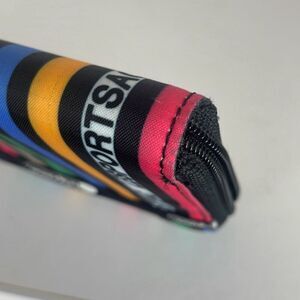 Additional Details: Colorful striped brand stamped print, full length slip style exterior pocket, zip around closure with center zip pocket divided interior compartment/2 full length slip style pockets/8 credit card slip pockets. Style is the Taylor Zip Around Wallet.