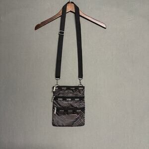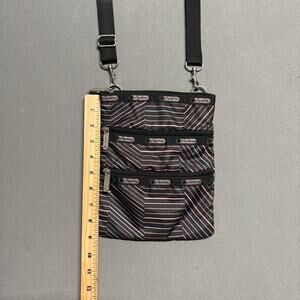 LeSportsac Black Striped Crossbody Travel Bag Multicolor 3 Zipper Adjustable