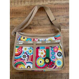 LeSportsac Deluxe Everyday Crossbody Bag Tan Nylon Adjustable Strap Jukebox Rare