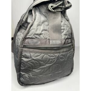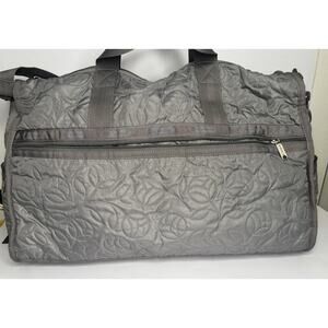 LeSportsac Large Weekender Duffle Travel Carry On Bag Gray Quilted Floral Print