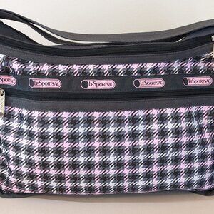 LeSportsac Pink/Gra Plaid Deluxe Everyday Bag