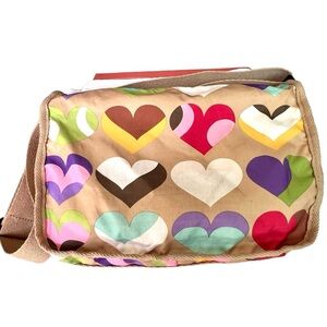 LeSportsac Two Piece Shoulder Cross Body Bag & Coin Purse Pouch Heart Design EUC
