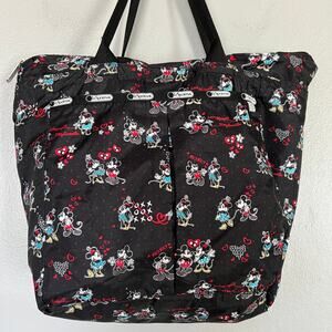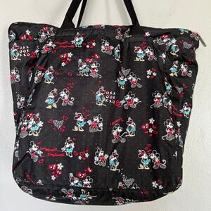 LeSportsac x Disney Mickey Loves Minnie Tote Travel Bag Black Red Hearts Mouse