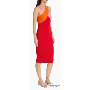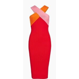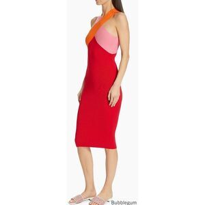 Le Superbe Colorblocked Cross-Over Midi-Dress in Bubblegum, Tangerine & Red NWT