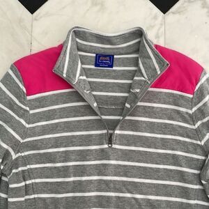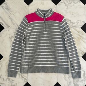 Le Tigre Vintage large Gray & White Striped Quarter Zip Pullover with Pink Detailing…great condition
