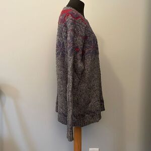 Pink, purple and gray snowflakes, you can’t go wrong this winter with a vintage apres ski sweater! The perfect look for those cold winter days. The soft knit fabric makes this the perfect pullover for a day on the slopes or a night by the fire.