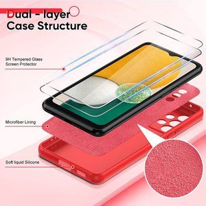 LeYi Red Silicone Samsung A53 Phone Case & 2 Tempered Glass Screen Protectors