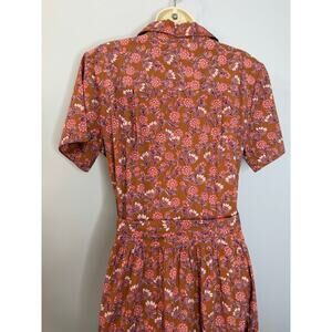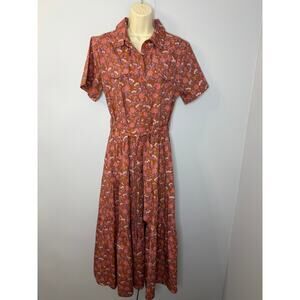 Lea Floral Shirt Midi Dress Short Sleeve Belted Women's M