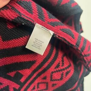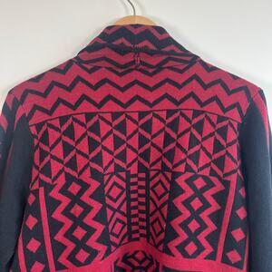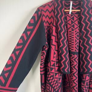 Lea & Nicole Open Front Cardigan Aztec Geometric Print Waterfall Front Black Red