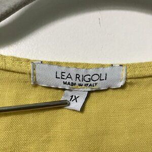 Lea Rigoli Linen Cardigan Womens 1x Chartreuse Yellow Open Front Waterfall Made in Italy