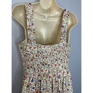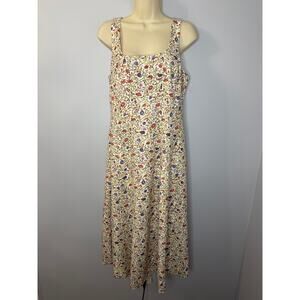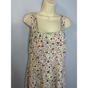 Lea Square Neck Floral Linen Blend Midi Dress Women's M
