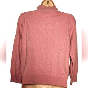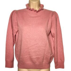Lea & Viola Cashmere Sweater Top Ruffle Mock Neck Pink Rose Puffed Sleeve M
