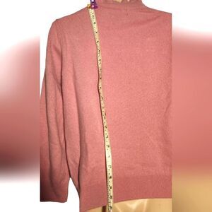 Lea & Viola 100% Cashmere Sweater Ruffle Mock Neck Pink Rose Puffed Sleeve