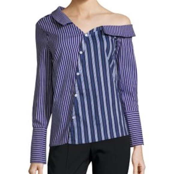 NWT Lea & Viola Off-the-Shoulder Striped Asymmetrical Button Down Shirt