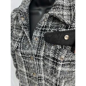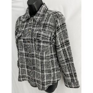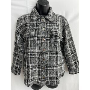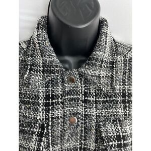 Lea & Viola Plaid Tweed Shirt M Essential Snap Buttons Black White Minimalist