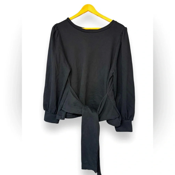 Lea & Viola Puff Sleeve Belted Black Sweatshirt | Women's Size L
