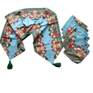 Leacock & Co Winter Christmas Teddy Bear Sweater Candy Table Runner & 6 Napkins