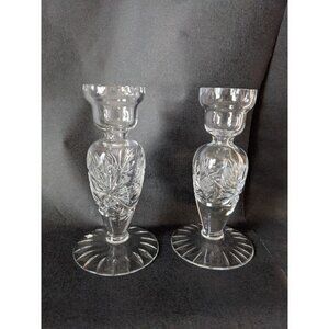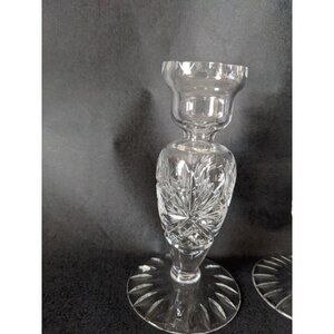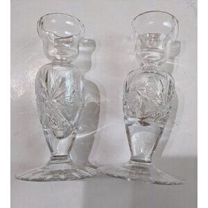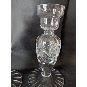 Lead Crystal Candle Holders Etched Design, Vintage Pair German Democratic Republ